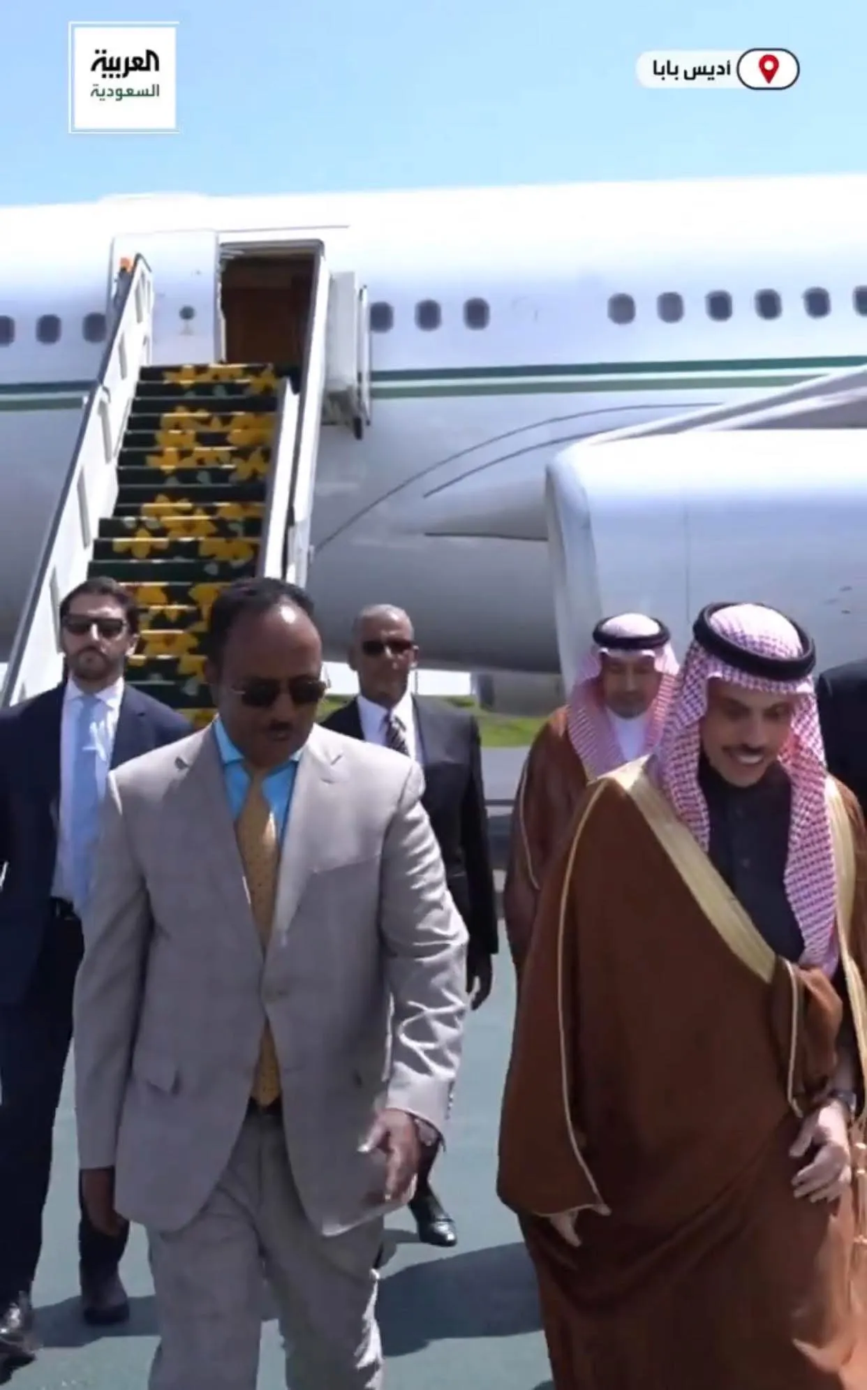 Taliyaha Hay’adda Sirdoonka Qaranka Itoobiya, Redwan Hussien, ayaa si diirran ugu soo dhaweeyay garoonka diyaaradaha caalamiga ah ee Addis Ababa Wasiirka Arrimaha Dibadda Boqortooyada Sacuudiga, Amiir Faisal bin Farhan Al Saud, oo maanta booqasho rasmi ah ku tagay dalka Itoobiya.