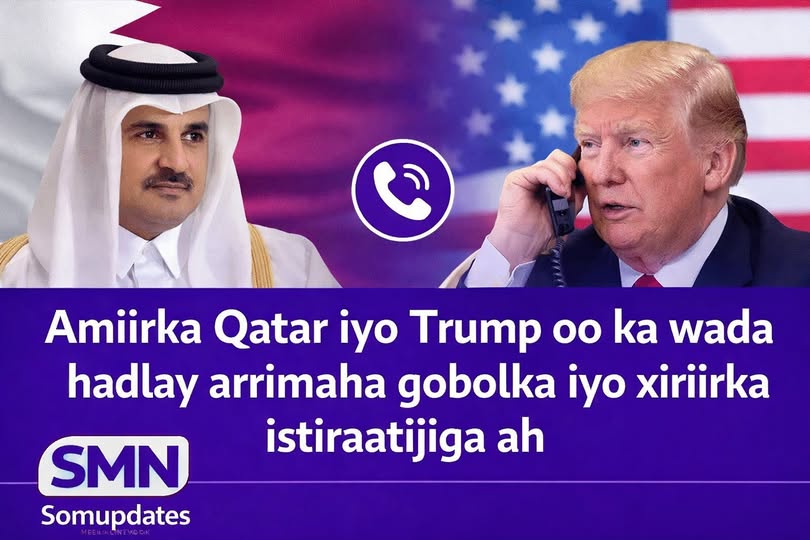 Amiirka Dowladda Qatar, Sheikh Tamim bin Hamad Al Thani, iyo Madaxweynaha Maraykanka, Donald Trump, ayaa Arbacadii ku wada xiriiray khadka taleefanka, iyagoo ka wada hadlay horumarrada ugu dambeeyay ee gobolka iyo xaaladaha caalamiga ah, sida lagu sheegay bayaan kasoo baxay Qasriga Amiirka ee Amiri Diwan.