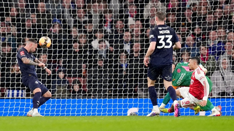 Difaaca Wigan, Jack Hunt, ayaa madax ku leexiyay gool saddexaad oo si kama’ ah u galay shabaqiisa, kahor inta uusan ka daahin kubbad sare oo uu soo tuuray Christian Norgaard, taasoo u oggolaatay Gabriel Jesus inuu meel bannaan ka dhaliyo goolkii afaraad ee Gunners.