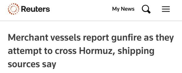 Sidoo kale Reuters ayaa ku warrantay labo markab oo isku dayay inay ka gudbaan marin-biyoodka Hormuz inay waxyar ka hor la kulmeen weerar ku qasbay inay dib uga laabtaan , taa oo dhalisay inay maraakiibtu joojiyaan socodkooda, saacado ka dib markii Iiraan ku dhawaaqday in dib loo xiray Hormuz.