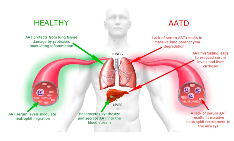Mid ka mid ah hidde-sideyaasha ayaa faraya beerka inuu sameeyo borotiin la yiraahdo alpha-1-antitrypsin (AAT ama A1AT). Borotiinkan wuxuu ku wareegaa dhiigga si uu uga ilaaliyo sambabada qiiqa, wasakhowga, uumiga iyo boodhka la neefsado.