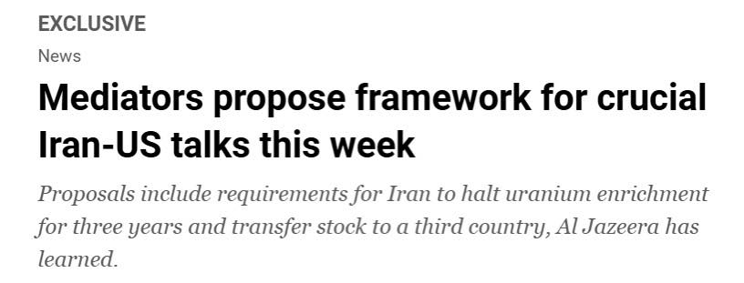 Dawladaha Qatar, Turkiga iyo Masar iyagoo ku jira doorka dhexdhexaadinta Mareykanka iyo Iiraan , inay soo jeediyeen qorshe la xiriira wadahadallada Iiraan iyo Mareykanka ee la filayo inay qabsoomaan Jimcaha. sida ay Al Jazeera baahisay caawa.