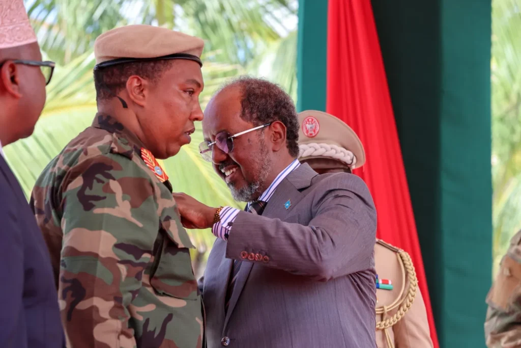 Madaxweynaha Jamhuuriyadda Federaalka Soomaaliya Mudane Xasan Sheekh Maxamuud oo Xarunta Wasaaradda Gaashaandhigga kaga qayb galay munaasabadda xuska sannad guurada 66-aad ee aas-aaska Ciidanka Xoogga Dalka Soomaaliyeed ayaa hambalyo u diray dhammaan Saraakiisha, Saraakiil Xigeennada, Alifleyda, Dablayda iyo qoysaska Ciidanka Xoogga Dalka Soomaaliyeed.