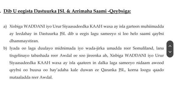 Masuuliyaddayda koobaad waa inaan si bilaa hagrasho ah u matalo danohooga goor kasta iyo goob kasta. Kuma shaqeeyo dareen ku dhisan jacayl iyo nacayb ee lagu raali galiyo kolba cida dalka maamusha. Bil caksi, waxaan ku shaqeeyaa dareenka dadka aan matalo iyo wixii aan u arko inuu Adkaynayo Waddajirka iyo Midnimada Shacabka Jamhuuriya Somaliland