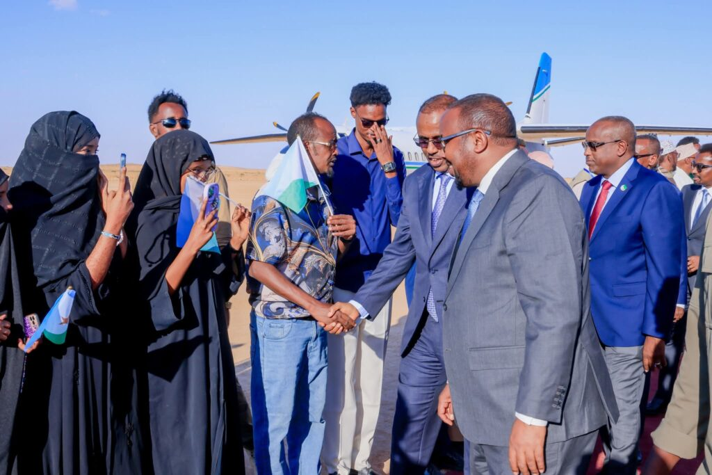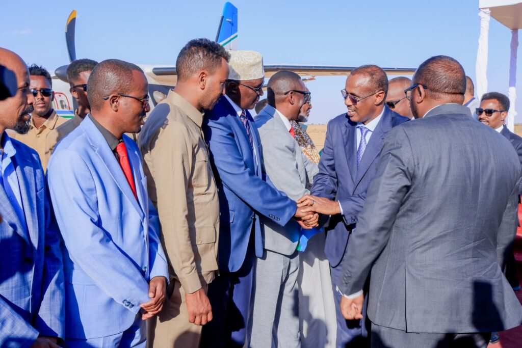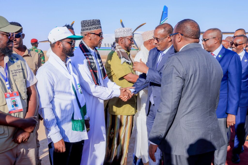 Wafdiga waxaa garoonka Diyaaradaha kusoo dhaweeyey Madaxweynaha Dowlad Goboleedka Waqooyi Bari Mudane Cabdulqaadir Firdhiye, waxaana hadda loo gelbiyey gudaha magaalada Laascaanood.