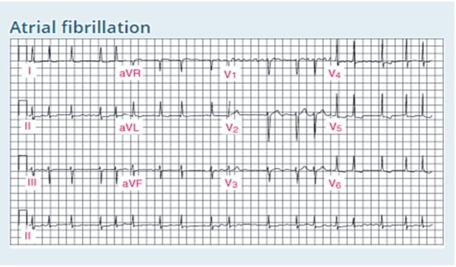 Marka AFib jirto, calaamadaha korontada ee atria waa jahawareer, taasoo keenta garaac degdeg ah oo aan nidaamsanayn (100–175 garaac daqiiqaddii).