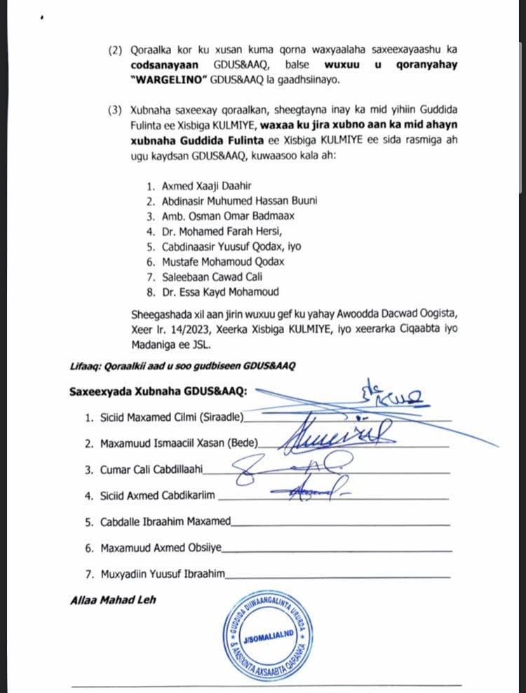 Guddida ayaa sheegtay in aanay aqoonsanayn xubnaha sheegtay in ay ka Tirsan yihiin guddida fulinta xisbiga maadama oo aanay ku jirin diwaanka xisbiga ee ay hayaan.