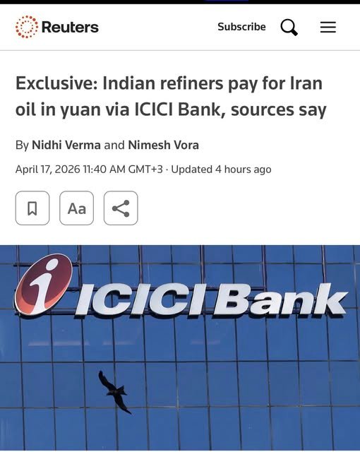 Wakaaladda wararka ee Reuters ayaa maanta baahisay in ay Hindiya bilowday lacagta Shiinaha ee yuan-ka inay shidaalka uga iibsato Iiraan, ka dib markii Iiraan ay ku xirtay dalalka ka iibsanaya shidaalka inay adeegsadaan lacagta Shiinaha.