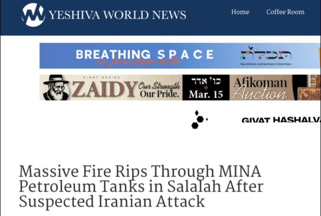 Mareegta Yeshiva World News, oo ah warbaahin ay leeyihiin Yuhuudda Orthodox-ka ah, ayaa sheegtay in goobta ay maanta Iiraan weerartay ee dekedda magaalada Salalah ee dalka Cumaan inay leedahay shirkadda Mareykanka oo lagu magacaabo MINA Petroleum.