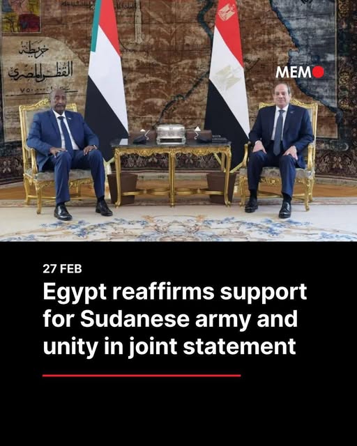 Masar ayaa dib u xaqiijisay taageeradeeda buuxda ee ay la garab taagan tahay ciidamada Suudaan, iyadoo ku celisay waxa ay ku tilmaamtay “khadad cas oo siyaasadeed” oo la xiriira midnimada iyo xasilloonida Suudaan.