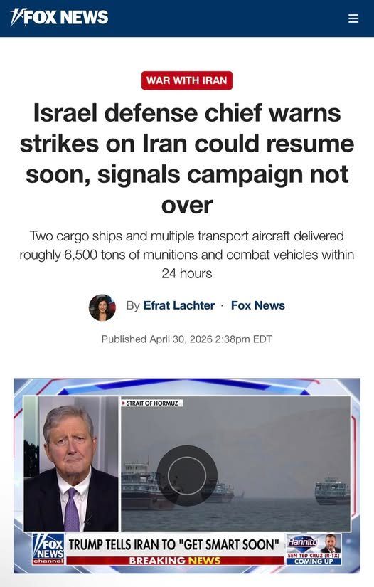 Dhinaca kale Wasiirka difaaca Israa’iil ayaa sheegay inay waqti dhow dagaalka Iiraan dib ugu noqonayaan, iyadoo Mareykanka uu 24 saac ee u dambeysay u diray Israa’iil 6,500 tan oo hub ah, taasoo muujinaysa caalamad la isugu diyaarinayo dagaal dib u qarxa, sida ay werisey Fox News.