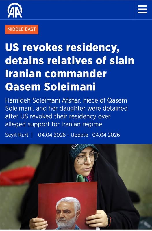 Hamideh Soleimani Afshar, iyo gabadheeda ayaa hadda ku jira xabsi ay leedahay ICE, waxana uu ku dooday in madaxfa dalkiisa ay ku rilmaamtay shayaaddiin waaweyn.