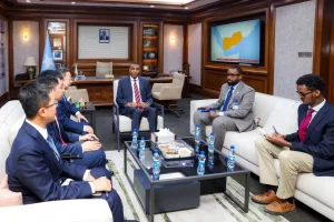 Ra’iisul Wasaaraha Xukuumadda Jamhuuriyadda Federaalka Soomaaliya, Mudane Xamsa Cabdi Barre, ayaa maanta xafiiskiisa ku qaabilay Danjiraha Jamhuuriyadda Dadka Shiinaha u fadhiya Soomaaliya, Mudane Wang Yu. Kulanka ayaa diiradda lagu saaray xoojinta xiriirka labada dal iyo arrimo quseeya amniga, siyaasadda iyo ilaalinta madax-bannaanida Jamhuuriyadda Federaalka Soomaaliya.