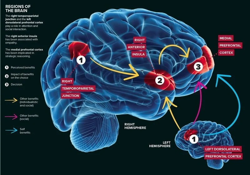 Labadan qaybood waxay door ka ciyaaraan go’aan qaadashada iyo naxariista (empathy), taasoo ah awoodda lagu kala garto dareenka dadka kale iyo kan nafteena.