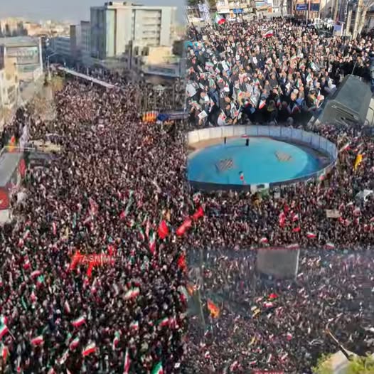 Shacabka Iran ayaa isu soo-bax ballaaran oo lagu taageerayo hoggaaminta Hoggaamiyaha Ruuxiga ah ee Iran ee hadda la doortay Ayatollah Mojtaba Khamenei ka dhigay Barxadda Tehran (Revolution Square)
