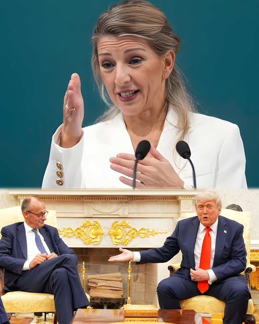 Yolanda Díaz waxay ku eedeysay hoggaamiyaha Jarmalka inuusan difaacin Spain, isla markaana uu iska aamusay markii Trump uu gudaha Aqalka Cad ku weeraray Spain oo ah dal saaxiib la ah Jarmalka kana tirsan Midowga Yurub.