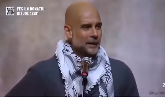 Tababbaraha kubadda cagta ee u dhashay Spain ee kooxda Manchester city, Pep Guardiola ayaa la Arkayay isagoo xirtay cimaamada astaanta u ah halganka Falastiin xilli uu ka qeybgalayay olole lagu taageerayo shacabka Falastiin.