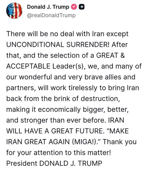 Trump ayaa waxyar ka hor yiri; “Wax heshiis ah lama geli doono Iiraan, haddii aysan si buuxda isu dhiibin .”