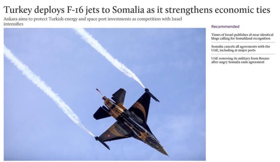 Dowladda Turkiga ayaa xaqiijisay inay u dirtay saddex diyaaradood oo F-16 ah Muqdisho, tallaabadan oo la xiriirta ballaarinta doorkeeda mashaariicda tamarta iyo hawada sare ee Soomaaliya.