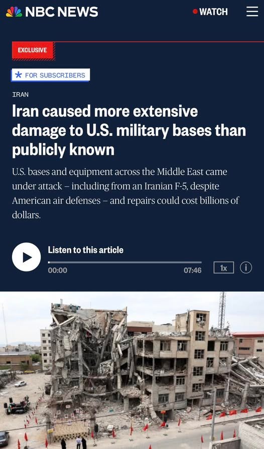 Warbaahinta Mareykanka laga leeyahay ee NBC News, ayaa daahqaaday inay Iiraan adeegsatay diyaarad nooca F-5 intii dagaalka lagu jiray , isla markaana diyaaradan ay ku guuleysatay inay ka gudubto nidaamyada difaaca Mareykanka oo weerar burburin ah ka fulisay saldhigyada uu Mareykanka ku leeyahay bariga dhexe.