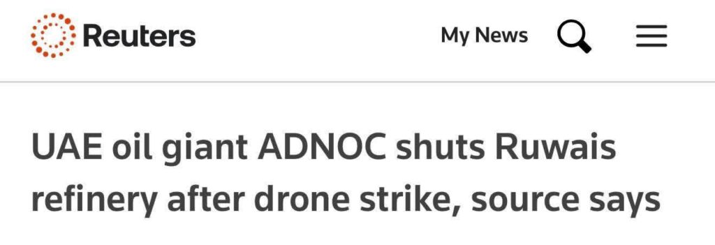 Xarunta ugu weyn ee shirkadaha shidaalka ee dalka Imaaraadka Carabta ayaa la xiray,ka dib markii warshada shidaalka sifeysa ee Ruwais ay ku qarxday diyaarad nooca aan duuliyaha lahayn, weerarkaa oo dhaliyay inuu dab qabsado qayb ka mid ah warshadaha xaruntan, sida ay maanta ku dhawaaqday shirkadda shidaalka Abu Dhabi ee ADNOC.