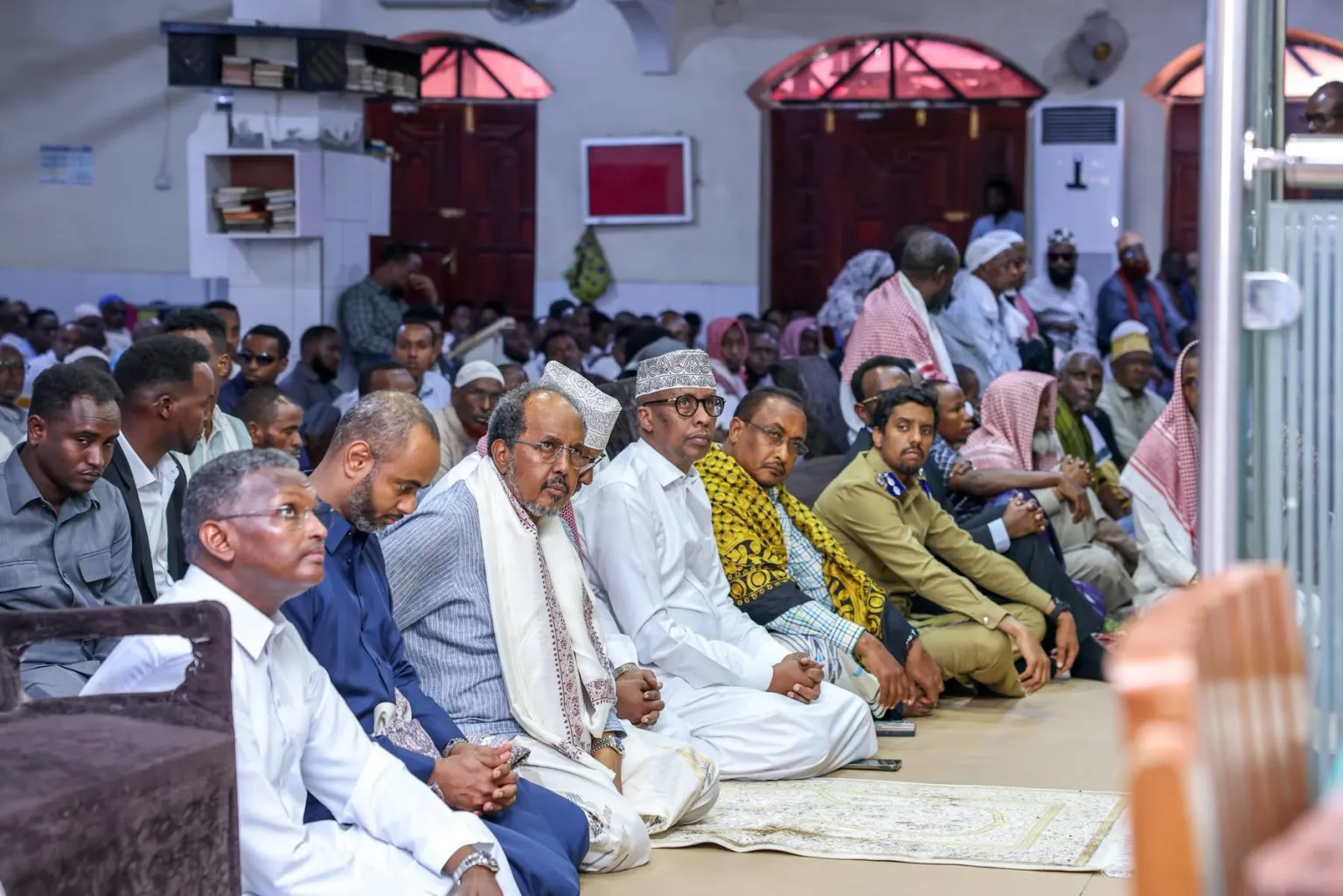 Madaxweynaha ayaa khudbad uu ka jeediyay masjidka si qoto dheer uga hadlay xaaladda guud ee dalka, isaga oo faahfaahin ka bixiyay dadaallada diblumaasiyadeed iyo kuwa sharci ee ay Dowladda Federaalka Soomaaliya ku wajahayso faragelinta shisheeye iyo tallaabooyinka lidka ku ah midnimada iyo madaxbannaanida qaranka.
